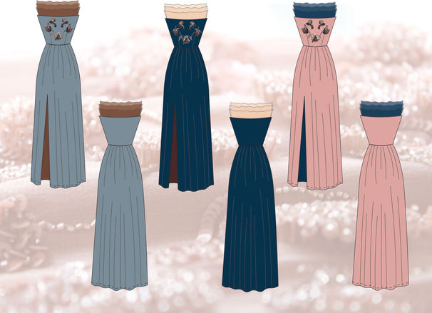 I designed and created 5 prom dresses between 2015-2017. Four were for me and one was for my cousin. This project reflects on past and present prom dress styles and brings them together. I also designed the floral prints within the looks.