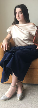This bridal gown is inspired by the generations of weddings within my family. I thought about my grandparents, my parents, and my aunt's and uncle's weddings. I also thought about my cousins' recent weddings and what future ones will be like for me and my other cousins. The lace detailing on the neck, waist and the tulle represent those 3 generations I was inspired by. I wanted to design something timeless and bring together the past and the future. I designed the veil to be incorporated into the gown instead of separate, so it is sewn into the top of the dress. On the other hand, the neck piece is separate from the gown. I was thinking about necklines and how the bride could have a high neck look without committing to a dress with full coverage. The bride could wear it during the ceremony and the reception even if she changes dresses, so she would have a piece with her during the whole event. The dress can also be worn without it, and it could be worn with another look, so the bride has a few options!